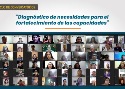 Con gran aceptación y participación de profesionales de las áreas de Servicio Social, Salud, Psicología, Trabajo, Legal y Educación, además de la Secretaría Técnica del Consejo Técnico Penitenciario de las diversas regiones del país, se desarrolló de manera virtual el «Ciclo de Conversatorios: Diagnóstico de Necesidades para el Fortalecimiento de las Capacidades».